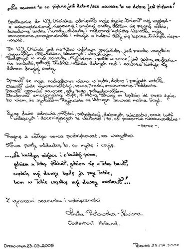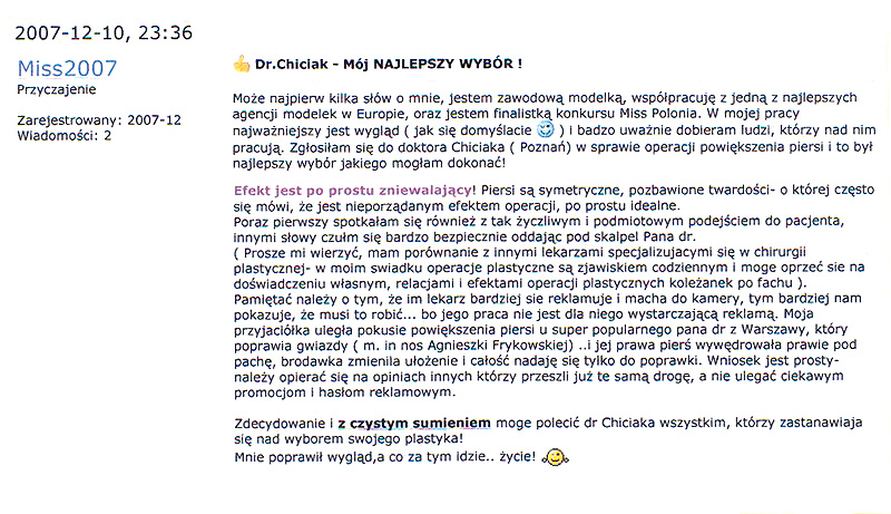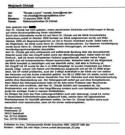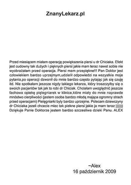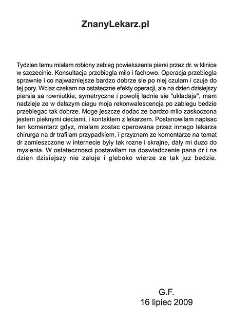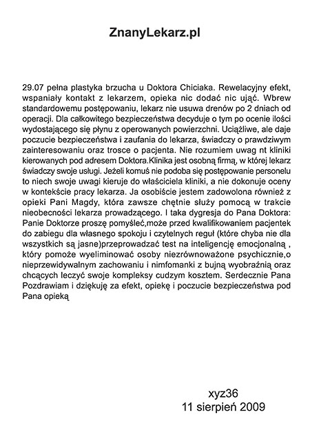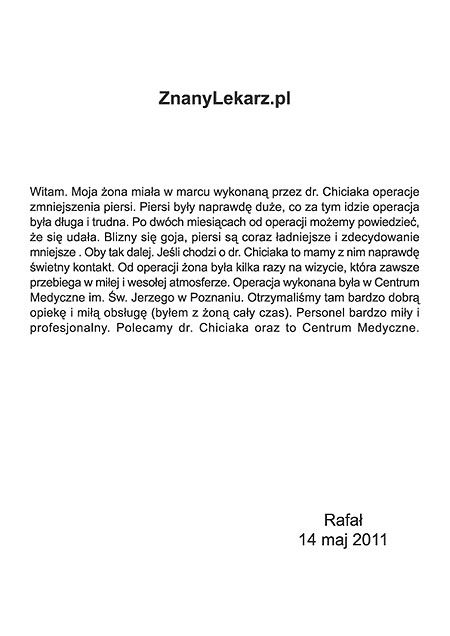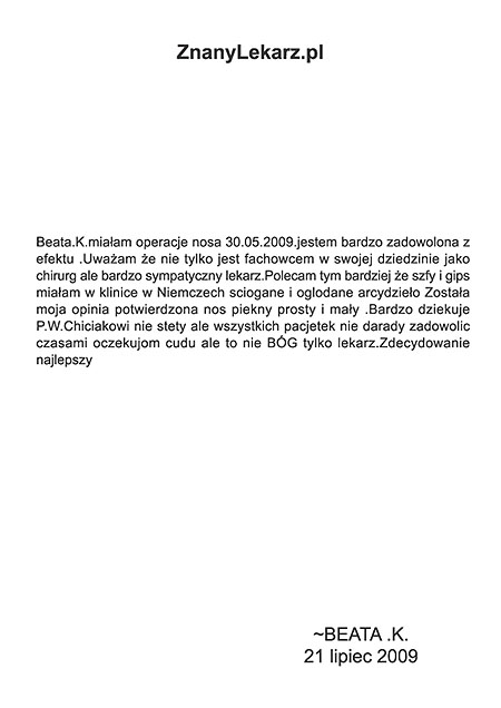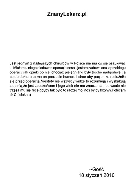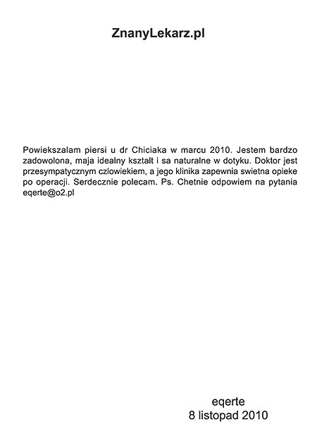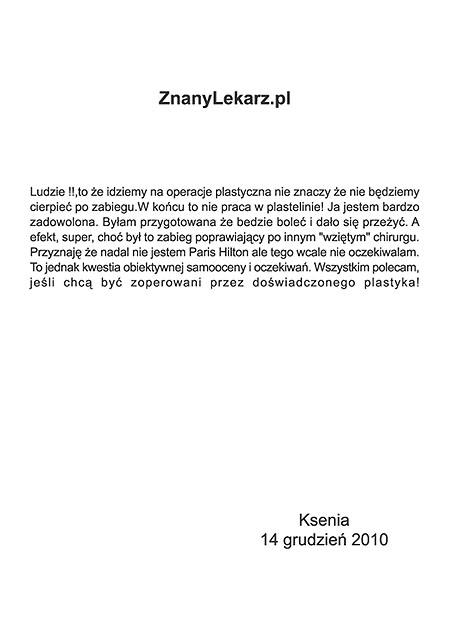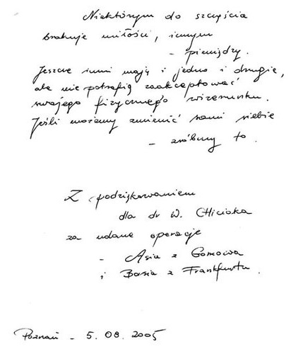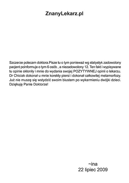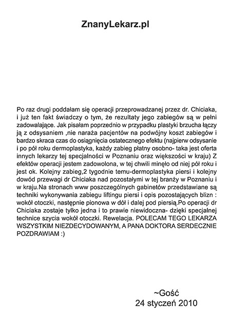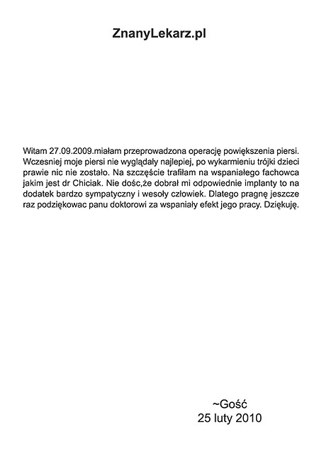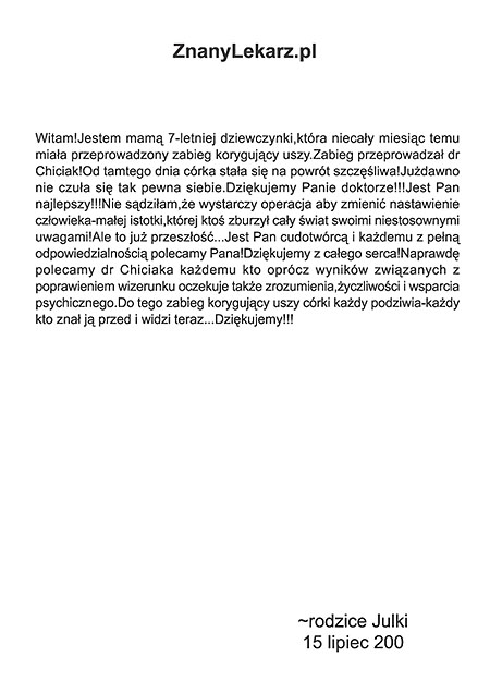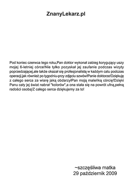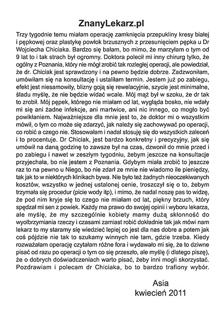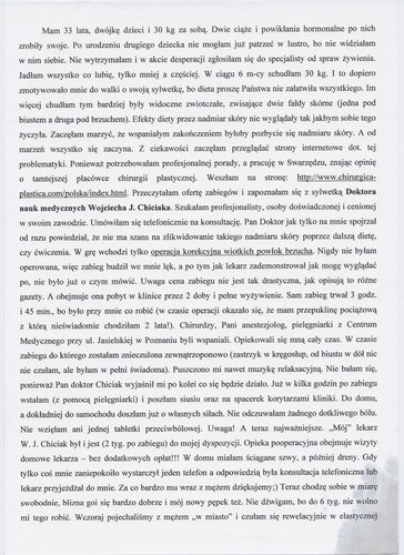 Poniżej przedstawiono tylko nieznaczny fragment pozytywnych opinii i podziękowań operowanych pacjentów i ich rodzin.